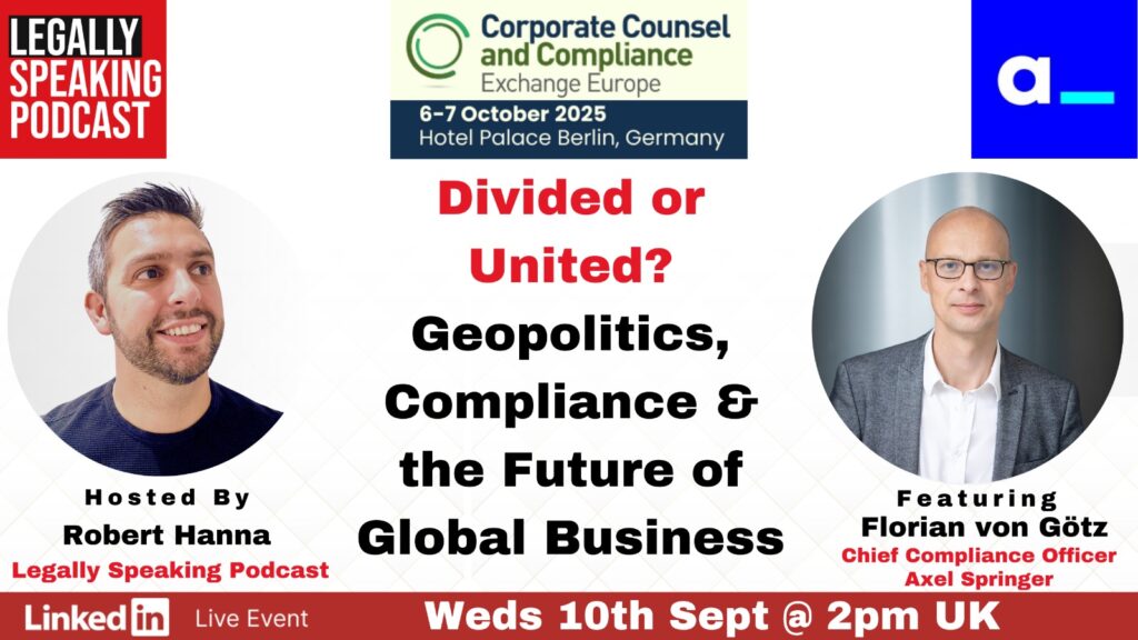 That was the central question in our Legally Speaking Podcast ™️ LinkedIn Live (proudly sponsored by Clio) with Florian von Götz, Chief Compliance Officer at Axel Springer. Here’s what you’ll take away: