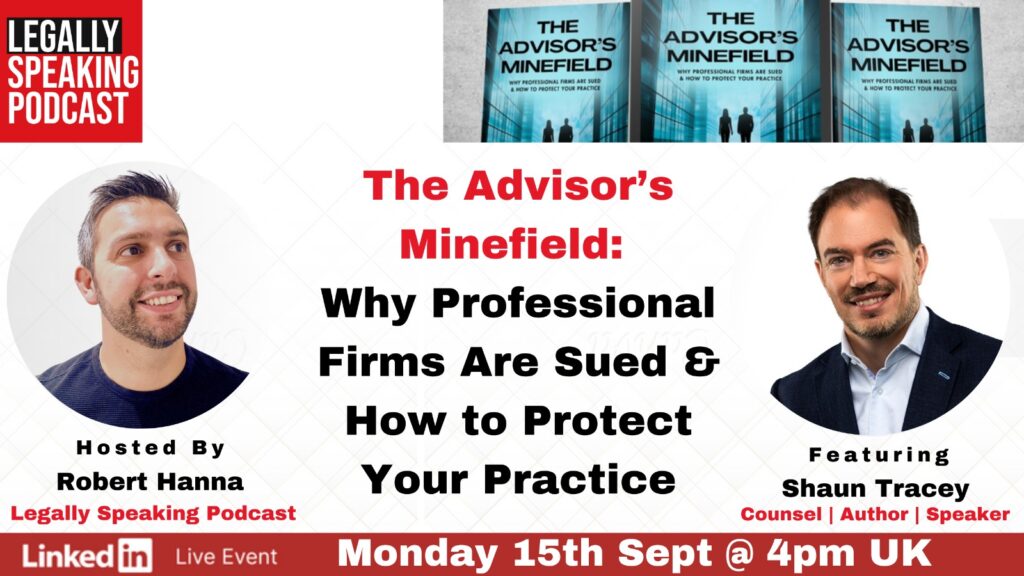 The Advisor’s Minefield: Protecting Your Practice in a World of Lawsuits Why do even the most elite advisors get sued — and what can you do to protect yourself? On our latest Legally Speaking Podcast™ Live (sponsored by Clio), I was joined by Shaun Tracey, Counsel at Campbells LLP and author of The Advisor’s Minefield.