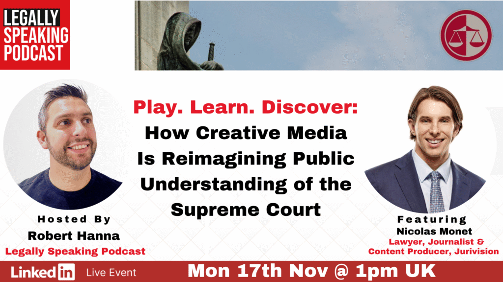 Welcome everybody to today's Legally Speaking podcast live proudly sponsored by Clio. And today we are diving into a powerful question for modern legal world, which is how do you make the justice system more understandable, accessible, and genuinely more engaging for the public, especially young people. And my guest has built one of the most innovative answers to